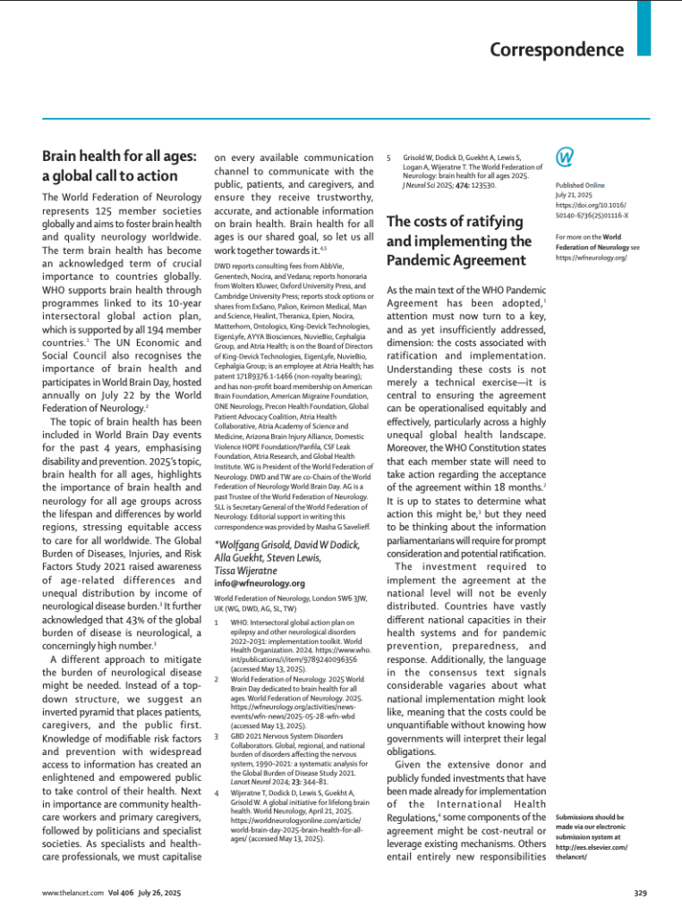 Wenham C, Katz R. The costs of ratifying and implementing the Pandemic Agreement. The Lancet. July 26, 2025.