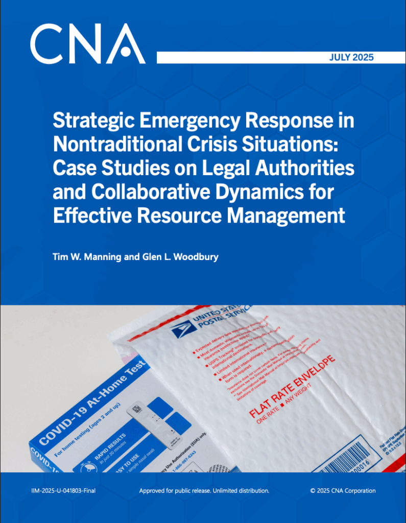 Manning T, Woodbury G. Strategic Emergency Response in Nontraditional Crisis Situations: Case Studies on Legal Authorities and Collaborative Dynamics for Effective Resource Management. The Center for Naval Analysis. July 2025.